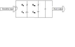 The membrane model is for a small section of the cell membrane; for larger sections it can be extended by adding similar sections, called compartments, with the parameter values being the same or different. The compartments are cascaded by a resistance, called axial resistance. Figure 6 shows a compartmental model of a neuron that is developed over the membrane model. Dendrites are the postsynaptic receptors receiving inputs from other neurons; and the axon with one or more axon terminals transmits neurotransmitters to other neurons.
