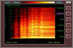 Tone quality and tone color are synonyms for timbre, as well as the "texture attributed to a single instrument". However, the word texture can also refer to the type of music, such as multiple, interweaving melody lines versus a singable melody accompanied by subordinate chords. Hermann von Helmholtz used the German Klangfarbe (tone color), and John Tyndall proposed an English translation, clangtint, but both terms were disapproved of by Alexander Ellis, who also discredits register and color for their pre-existing English meanings.[1] Determined by its frequency composition, the sound of a musical instrument may be described with words such as bright, dark, warm, harsh, and other terms. There are also colors of noise, such as pink and white. In visual representations of sound, timbre corresponds to the shape of the image,[2] while loudness corresponds to brightness; pitch corresponds to the y-shift of the spectrogram.