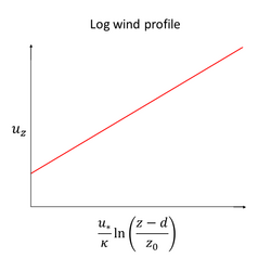 [math]\displaystyle{ u_z = \frac{u_*}{\kappa} \ln \left(\frac{z}{z_0} \right). }[/math]