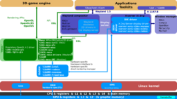 Gallium3D has been a part of Mesa since 2009[155] and is currently used by the free and open-source graphics driver for Nvidia (nouveau project),[156][157] for AMD's R300–R900,[158][159][160] Intel's 'Iris' driver for generation 8+ iGPUs[161] and for other free and open-source GPU device drivers.