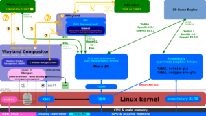 Windowing system: X11, Wayland, SurfaceFlinger (Android) |