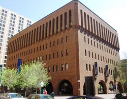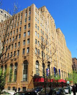 The first class was graduated in 1826, receiving their degrees only after the disposition of a lawsuit seeking to close the school.[13] The first classes were held in the Tivoli Theater on Prune Street in Philadelphia, which had the first medical clinic attached to a medical school.[15] Owing to the teaching philosophy of Dr. McClellan, classes focused on clinical practice.[15] In 1828, the Medical Department moved to the Ely Building, which allowed for a large lecture space and the "Pit," a 700-seat amphitheater to allow students to view surgeries.[15] This building had an attached hospital, the second such medical school/hospital arrangement in the nation, servicing 441 inpatients and 4,659 outpatients in its first year of operation.[15] The relationship with Jefferson College survived until 1838, when the Medical Department received a separate charter, allowing it to operate separately as the Jefferson Medical College.[14][16] At this time, all instructors, including McClellan, were vacated from the school and the trustees hired all new individuals to teach. This has been considered the time at which the school came to be considered a "legitimate" medical school.[11][17]