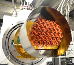 The CLASS instrument is specifically designed to measure polarization. As an electromagnetic wave, light consists of oscillating electric and magnetic fields. These fields can have both an amplitude, or intensity, and a preferred direction in which they oscillate, or polarization. The polarized signal that CLASS will attempt to measure is incredibly small. It is expected to be only a few parts-per-billion change in the polarization of the already-cold 2.725 K CMB.[11] To measure such a small signal, CLASS will employ focal plane arrays with large numbers of feedhorn-coupled, transition-edge-sensor bolometers cooled to just 0.1 °C above absolute zero by cryogenic helium refrigerators. This low temperature reduces the intrinsic thermal noise of the detectors.[12][13][14]