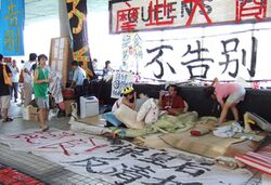 Public protest against the demolition of Queen's Pier: hunger strikers occupied the location in July 2007.
