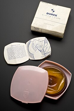 - The diaphragm — A latex cover for the cervix inserted into the vagina before intercourse, preventing sperm from reaching the egg. Combined with an application of spermicidal jelly, the effectiveness is around 90%. An oddity worth mentioning is that lemons were used in the 1700s as a diaphragm, and modern science has discovered they are effective at killing sperm and the HIV virus.[17] However, other studies have concluded that lemon juice can damage vaginal tissue, so lemons are probably not a wise choice for the educated woman.[citation needed]