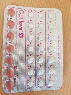 - Oral contraception (The Pill) — A female contraception pill containing one or a combination of hormones. The hormones override the menstrual cycle, preventing ovulation as well as making it difficult for sperm to enter the uterus and for fertilized eggs to implant in the uterine wall. In the most common formulation, the drug is taken daily for three weeks followed by one week of placebo or nothing. The "week off" causes breakthrough bleeding