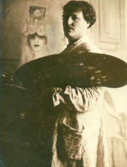Federico Beltrán Masses (September 8, 1885 – October 4, 1949) was a Spanish painter born in Cuba; the only child of Luis Beltrán Fernández Estepona, a former Spanish army officer stationed in Cuba, and Dona Mercedes Masses Olives, the daughter of a doctor from Lleida, Catalonia, who himself had married the daughter of a wealthy Spanish Cuban-landowner. He spent his youth in Barcelona, where he began his artistic training in the well-regarded Escola de la Llotja. He later moved to Madrid, where he received more training under Joaquín Sorolla. He married Irene Narezo Dragoné, a painter as well, of a distinguished family and good economic position. They moved to Paris in 1916 to further Masses' career and settled there until 1946, after which he moved to Barcelona in 1946 and later died in 1949.[198][199] Beltran Masses was renowned as a master of colour and the psychological portrait, as well as a painter of seductive images of women. Born in Cuba, where his mother's family had lived for nearly two centuries, his family returned to Spain to live in Barcelona, when he was seven years old – the painter's Spanish heritage would influence his oeuvre deeply while he sometimes referenced the tropical exoticism of Cuba in the settings for some of his subjects. His paintings are rich with musical and poetic references influenced by 'Greek mythology, orphic mysteries and fantasies of Asia, where we are led by Gustave Moreau' remarked Louis Vauxcelles.[200]