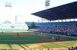 Many Cubans are avid sports fans who particularly favor baseball. Havana's team in the Cuban National Series is Industriales. FCBA. The city has several large sports stadiums, the largest one is the Estadio Latinoamericano. Admission to sporting events is generally free, and impromptu games are played in neighborhoods throughout the city. Social clubs at the beaches provide facilities for water sports and include restaurants and dance halls.