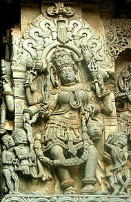 The Western Ganga Dynasty (350–1000 CE) kings of Karnataka built many Hindu temples along with saptamatrika carvings[29] and memorials, containing sculptural details of saptamatrikas.[30] The evidence of Matrika sculptures is further pronounced in the Gurjara–Patiharas (8th to 10th century CE) and Chandella period (8th to 12th century CE).[31] The Chalukyas claimed to have been nursed by the Sapta Matrikas. It was a popular practice to link South Indian royal family lineage to a Northern kingdom in ancient times.[32] During the Chalukya period (11th to 13th century), all Matrikas continued to figure among the deity sculptures of this period.[citation needed]