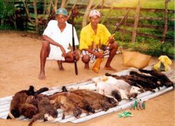 ↑ 222.0222.1222.2Fa, J. E.; Juste, J.; Perez de Val, J.; Castroviejo, J. (1995). "Impact of market hunting on mammal species in Equatorial Guinea". Conservation Biology9 (5): 1107–1115. doi:10.1046/j.1523-1739.1995.9051107.x. PMID 34261280. https://archive.org/details/sim_conservation-biology_1995-10_9_5/page/1107.