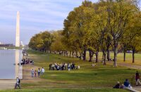 Rows of American elm trees lining the sides of a path traversing the length of the National Mall in Washington, D.C. (April 2010)