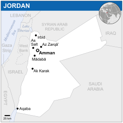 The Hashemite Kingdom of Jordan is an Arab kingdom in the Middle East, located on the East Bank of the River Jordan. Jordan borders Saudi Arabia to the south and east, Iraq to the northeast, Syria to the north, and (perhaps most infamously) Israel to the west. Jordan and Israel share control of the Dead Sea. The Kingdom is what remains of the once great power of the Hashemite dynasty, which claims direct descent from the Prophet Muhammad and his ancestors.[3] Most of Jordan's population is Arab, and the country's capital is Amman.