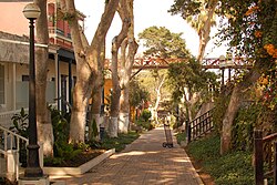 These fine examples of medieval Spanish fortifications were used to defend the city from attacks by pirates and corsairs. For this, part of the Walls corresponding to the rear area of the Basilica of San Francisco, very close to the Government Palace, was recovered, in which a park was built (called Parque de la Muralla) and in which you can see remains of it.[89] Half an hour from the historic center, in the district of Miraflores you can visit the tourist and entertainment center Larcomar which is located on the cliffs facing the sea.