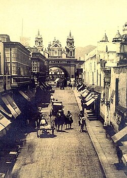 In 1872 the colonial City Walls were demolished by the US engineer Henry Meiggs under contract with the Peruvian government,[36] in anticipation of further urban growth in the future. However, this period of economic expansion also widened the gap between rich and poor, producing widespread social unrest. The famous, Arco del Puente, the gate of the colonial wall of Lima, was consumed by a fire caused by street vendors in 1879.[34]
