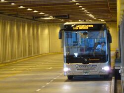 The Metropolitan Transport System or El Metropolitano is a new, integrated system, consisting of a network of buses that run in exclusive corridors under the Bus Rapid Transit system (BRT). The goal is to reduce passengers' commute times, protect the environment, provide improved security and overall quality of service. Metropolitano was executed with funds from the City of Lima and financing from the Inter-American Development Bank and the World Bank. Metropolitana is the first BRT system to operate with natural gas, seeking to reduce air pollution.[140] This system links the principal points of the Lima Metropolitan Area. The first phase of this project has 33 kilometers (21 mi) of line (north) to Chorrillos (south). It began commercial operations on 28 July 2010. Since 2014, Lima Council operates the "Sistema Integrado de Transporte Urbano" (Urban integrated transport system), which comprises buses over Avenida Arequipa.[141] By the end of 2012, the Metropolitano system counted 244 buses in its central routes and 179 buses in its feeding routes. Weekday use averages 437,148 passengers. Usage increased since 2011 by 28.2% for weekdays, 29.1% for Saturdays and 33.3% for Sundays.[131]