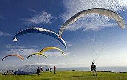 The summers, December through April, are sunny, hot, and muggy.[53] Daily temperatures oscillate between lows of 18 to 22 °C (64 to 72 °F) and highs of 25 to 30 °C (77 to 86 °F). Coastal fogs occur in some mornings and high clouds in some afternoons and evenings. Summer sunsets are colorful, known by locals as "cielo de brujas" (Spanish for "sky of witches"), since the sky commonly turns shades of orange, pink, and red around 7 pm.