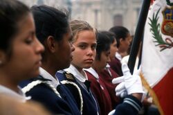 According to the 2007 Peru Census, 82.83% of Lima residents over the age of twelve declared they were Catholic, while 10.90% profess the Evangelical religion, 3.15% belong to other religions and 3.13% do not specify any religious affiliation.[124] One of the most prominent Catholic religious manifestations in the capital is the procession of the Señor de Los Milagros (Lord of Miracles),[125] whose image dating from the colonial era goes out in procession through the streets of the city in the month of October of each year. The Señor de Los Milagros was named Patron of the city by the Cabildo of Lima in 1715 and Patron of Peru in 2010.