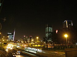 The city began to recover from the violence from the 1980s and 90s. The Municipality of Lima began to reorganize the city, remodeling parks, streets, and buildings. The early 2000s and 2010s saw a growth in high rise buildings, especially in the economic center of the San Isidro District. The tallest building in Lima and all of Peru, the Torre Banco de la Nación, was completed in 2015. Construction of buildings grew 3.9% in 2024, following the countries economic growth.[46] In 2007, the city established El Metropolitano, a rapid bus transport system operating from the north to the south of the city. The Lima and Callao Metro Line 1 was finally completed in 2010, after numerous halts in the 1970s and 90s. The second line of the metro began construction in the early 2020s.