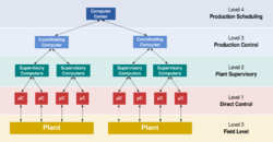 The accompanying diagram is a general model which shows functional manufacturing levels in a large process using processor and computer-based control.