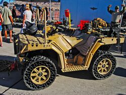 In November 2016, the U.S. Marine Corps signed a $6.5 million contract with Polaris to deliver 145 MRZR-D ATVs. Called the Utility Task Vehicle (UTV), it is a version of the vehicle already in use by U.S. Special Operations Command, but is designed to be diesel-powered and can run on JP-8 fuel. The Marines bought the unarmored ATVs because they can fit inside an MV-22 Osprey, enabling them to be deployed from long distances, to provide logistics support to ground combat units, assisting them to travel and transport supplies quicker and easier than previously on foot. The vehicles can carry four troops and have a small cargo bed capable of carrying 1,500 lb (680 kg) of payload. It is planned to field 18 MRZR-Ds per infantry regiment. The vehicles are to be delivered from late-January to April 2017.[30][31][32]