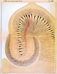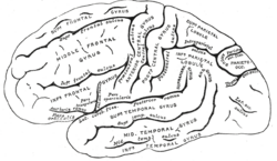 Paul Broca associated regions of the brain with specific functions, in particular language in Broca's area, following work on brain-damaged patients.[249] John Hughlings Jackson described the function of the motor cortex by watching the progression of epileptic seizures through the body. Carl Wernicke described a region associated with language comprehension and production. Korbinian Brodmann divided regions of the brain based on the appearance of cells.[249] By 1950, Sherrington, Papez, and MacLean had identified many of the brainstem and limbic system functions.[250][251] The capacity of the brain to re-organise and change with age, and a recognised critical development period, were attributed to neuroplasticity, pioneered by Margaret Kennard, who experimented on monkeys during the 1930-40s.[252]
