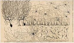 Studies of the brain became more sophisticated with the use of the microscope and the development of a silver staining method by Camillo Golgi during the 1880s. This was able to show the intricate structures of single neurons.[243] This was used by Santiago Ramón y Cajal and led to the formation of the neuron doctrine, the then revolutionary hypothesis that the neuron is the functional unit of the brain. He used microscopy to uncover many cell types, and proposed functions for the cells he saw.[243] For this, Golgi and Cajal are considered the founders of twentieth century neuroscience, both sharing the Nobel prize in 1906 for their studies and discoveries in this field.[243]