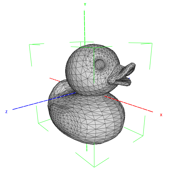 Let's have a look at a little duck. It's made of 2108 dots (vertices) and 4212 faces. Most of these can be found in its eyes and mouth.