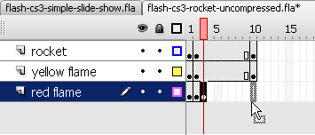 Now we have two versions of rocket *.swf move clipt that we can reuse in another Flash animations
